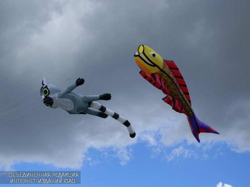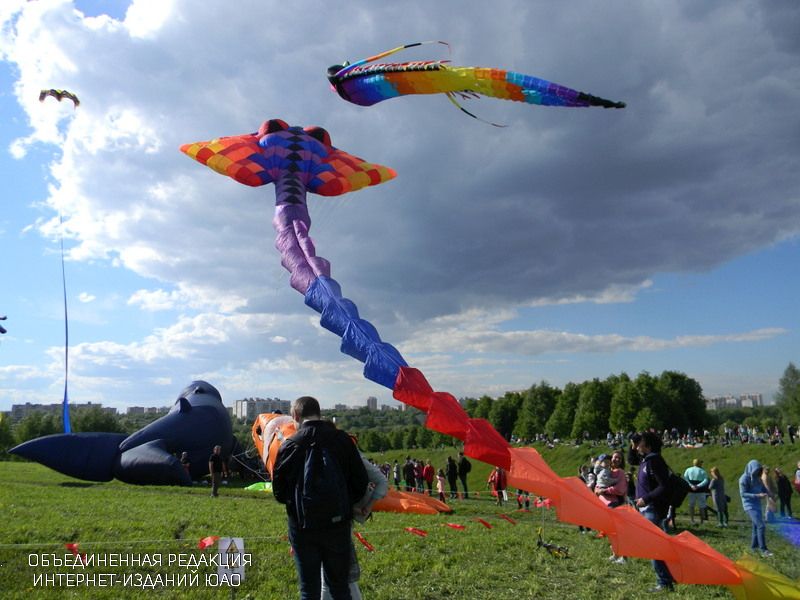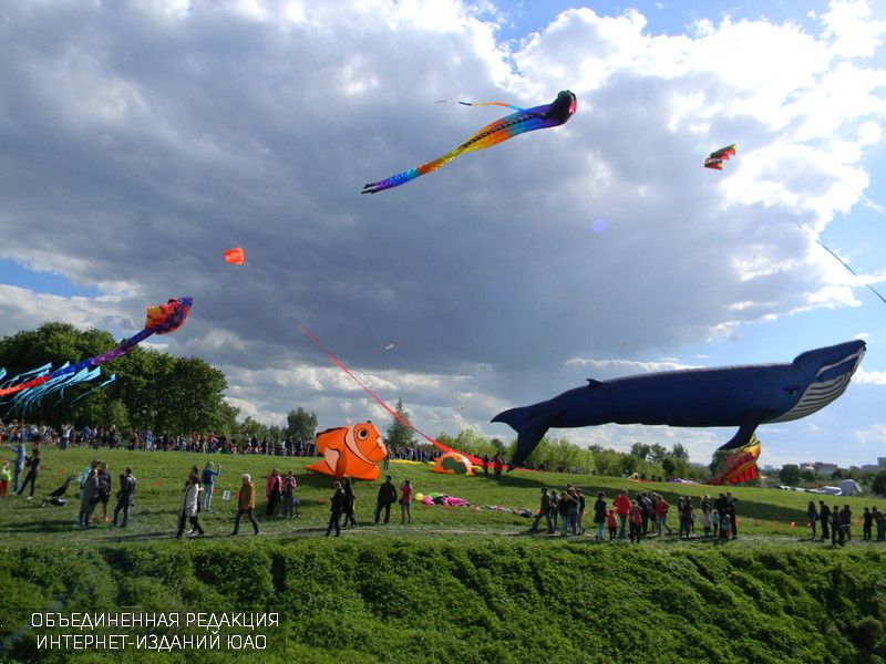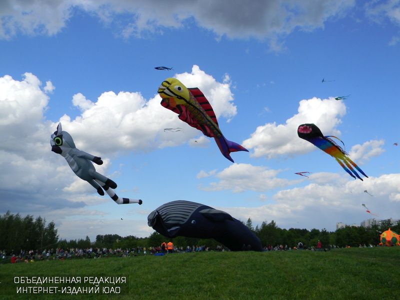 Фестиваль воздушных змеев «Пестрое небо» прошел 27 и 28 мая на берегу Нижнецарицынского пруда в парке Царицыно. Праздник был организован клубом любителей воздушных змеев Prokite при поддержке музея «Царицыно». Огромные рыбы, осьминоги, русалка и прочие морские обитатели, проплывающие в небе, были видны далеко за пределами парка. Гвоздем программы стал гигантский 30-метровый кит – самый крупный воздушный змей в России.