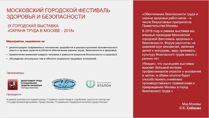 «Обеспечение безопасности труда и охрана здоровья работников – в числе безусловных приоритетов Правительства Москвы», – подчеркнул в своем приветственном обращении Мэр Москвы Сергей Собянин.