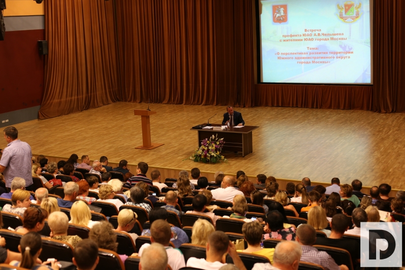О перспективах развития территорий Южного округа Москвы пошла речь на очередной встрече префекта ЮАО Алексея Челышева с жителями. Состоялась она 27 июня в спортивно-педагогическом колледже Москомспорта. В работе встречи приняли участие представители префектуры Южного округа, управы района Чертаново Южное, муниципальные депутаты, руководители образовательных учреждений, общественных организаций и др. Жители, присутствующие на встрече, смогли лично задать интересующие их вопросы префекту ЮАО.