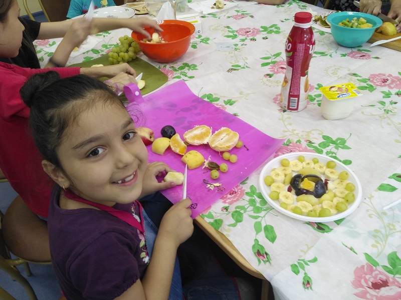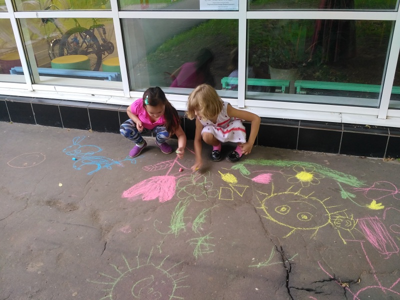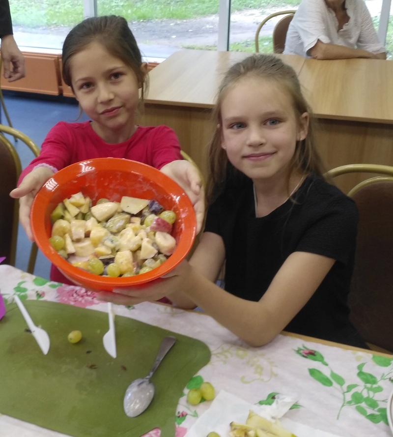 «Так как погода была благосклонна, мероприятие разделилось на две части. В первой под открытым небом дети играли в шахматы и рисовали мелками на асфальте. А во второй части юные кулинары вместе с родителями вооружились пластиковыми ножами и приготовили фруктовый салат, обильно приправив его йогуртом. Самому маленькому посетителю всего 3 года, и он с радостью принял участие вместе с остальными ребятами.