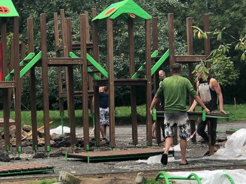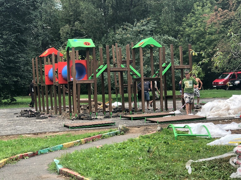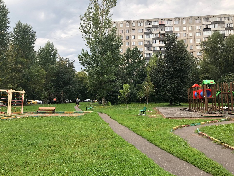 Вопрос благоустройства площадки поднимался жителями района. В итоге было принято решение обновить уже морально устаревшую детскую площадку. Теперь здесь появились две игровые зоны: одна предусмотрена для маленьких детей, другая – для детей постарше. Пока ведутся монтажные работы нового игрового комплекса. В итоге пластиковое покрытие заменят на искусственную траву, что сделает пребывание детей на площадке более безопасным. Также установят садовый бортовой камень и новое ограждение. Для удобства обновят лавочки для отдыха. Кроме того, на площадке появятся современные опоры освещения.