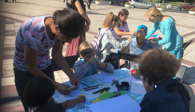 Ростовая кукла в виде медведя с двумя флагами встречала желающих около главного входа в музей-заповедник «Царицыно». Горожанам предлагалось принять участие в мастер-классах. Некоторые под руководством профессионала занялись кардмейкингом – созданием красивых открыток из подручных средств. Другие посетители интересовались рисунком ниткой на бумаге.