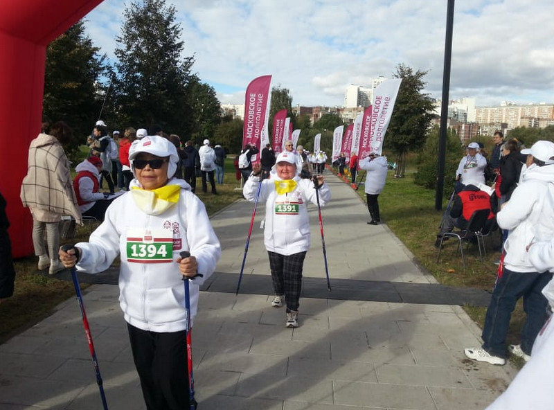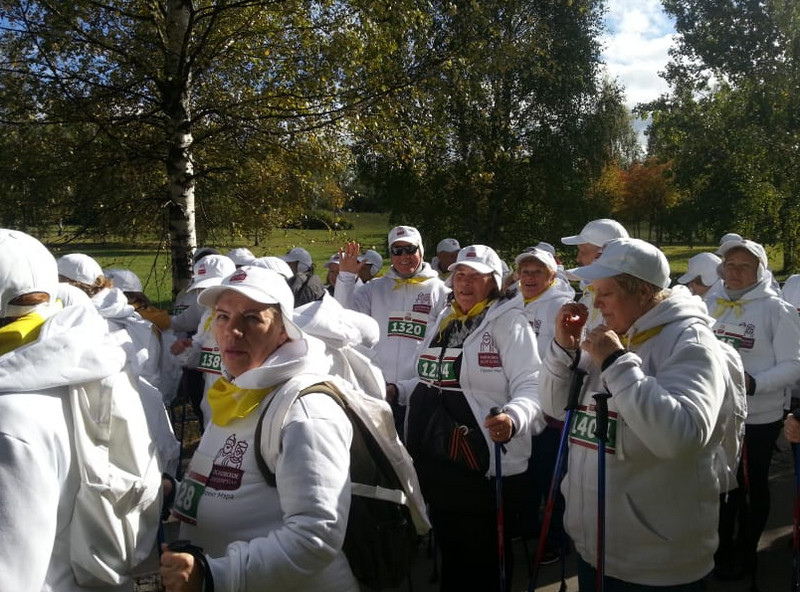 Активисты проекта «Московское долголетие» района Бирюлево Восточное приняли участие в самом массовом марафоне по скандинавской ходьбе среди пенсионеров, который прошел в парке «Митино» в субботу, 29 сентября.