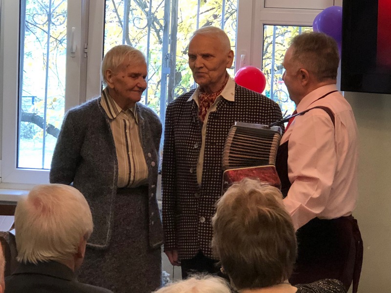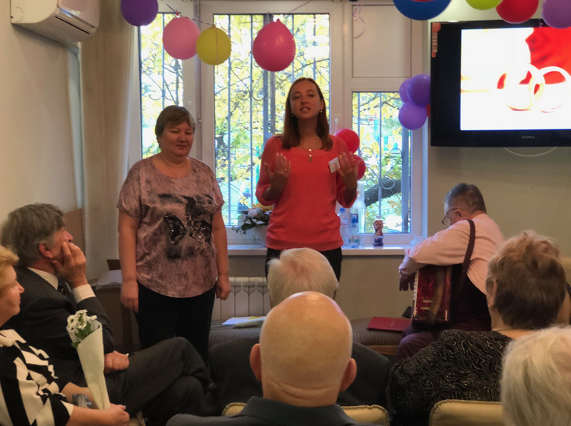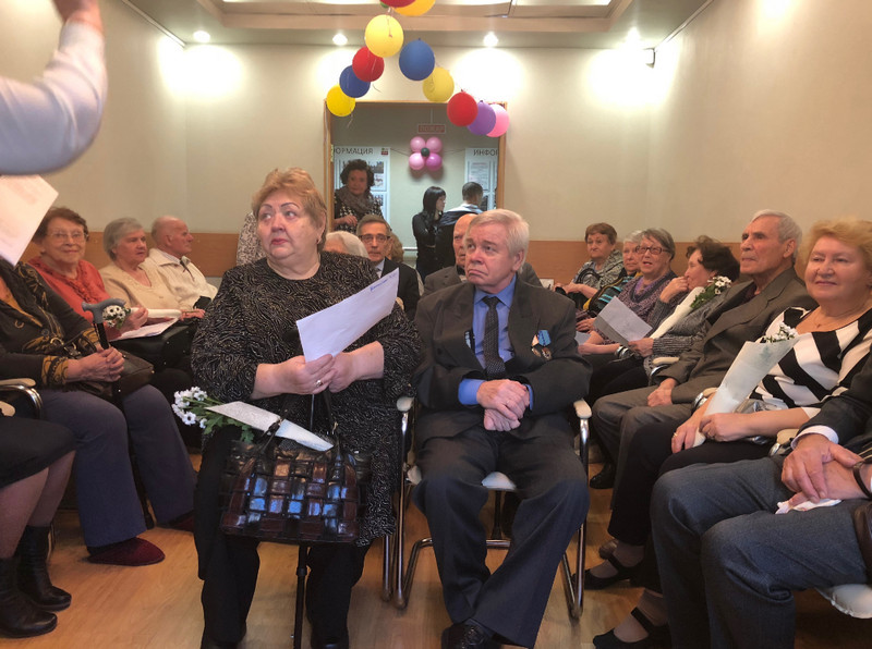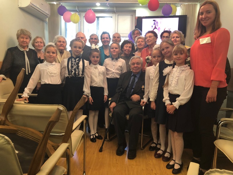 Перед юбилярами выступил детский хор школы № 1861 под руководством Елены Петровой. Дети исполняли песни и читали юбилярам стихи. Также ветеранам спел всеми любимый гармонист Николай Кузьмич Филатов. Как рассказала председатель организационно-методической комиссии районного Совета ветеранов Людмила Гаврина, после концертной программы ребята подарили ветеранам цветы и рисунки. Во время праздничного чаепития парам вручили памятные подарки – семейные книги «Напиши родословную».