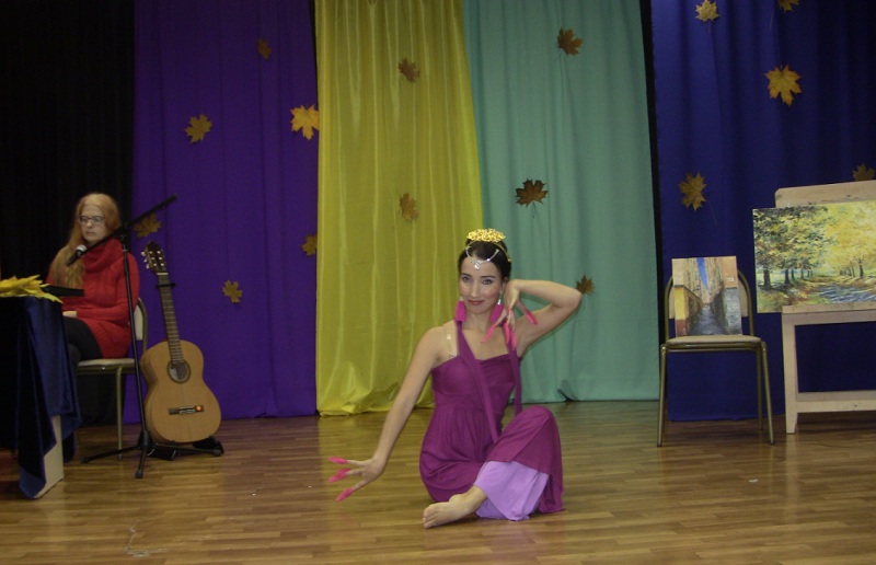 Литературно-музыкальный вечер «Осень в звуках и красках» прошел в библиотеке № 140, по адресу: улица Лебедянская, 24-2, – в воскресенье, 4 ноября. Зрители посмотрели концерт, где под звуки гитары прозвучали романсы, были зачитаны стихи русских поэтов на осеннюю тему, а также исполнены индийские танцы. Ведущими мероприятия стали певица, гитаристка Елена Липаткина Елена Юрьевна и Наталья Кутенина. Стихи читал Валентин Фадеев.