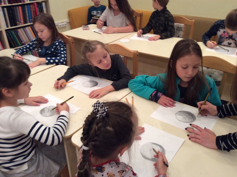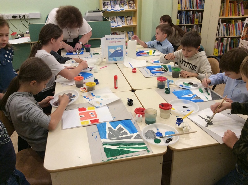 Создавать рисунки с использованием малярного скотча попробовали взрослые и дети на мастер-классе «Горные вершины». «Поискали художника вместе с привидениями» юные гости еще одного занятия. Ребята создавали своего маленького «духа», используя технику кляксографию, а потом для каждого придумали историю.