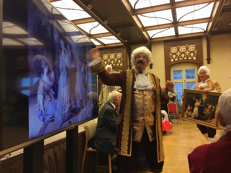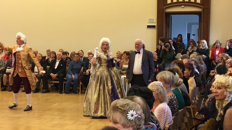 — Было невероятно весело и интересно, — говорит Татьяна Ивановна, — никто из гостей не скучал. Все время нам предлагались какие-то развлечения, игры, квесты. Например, нас проверяли на знание «бальных» терминов. Ведущие подносили к зрителям мешочек, откуда нужно было вытащить бочонок с номером вопроса. Из трех вариантов ответа участник выбирал тот, который он считает верным. Кто неправильно отвечал, тот выбывал из игры. Потом всех «незнаек» собрали в одну группу и отправили в соседний зал разучивать танец. Через некоторое время они его демонстрировали зрителям.