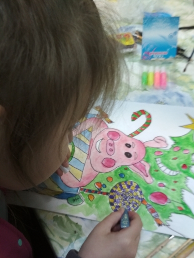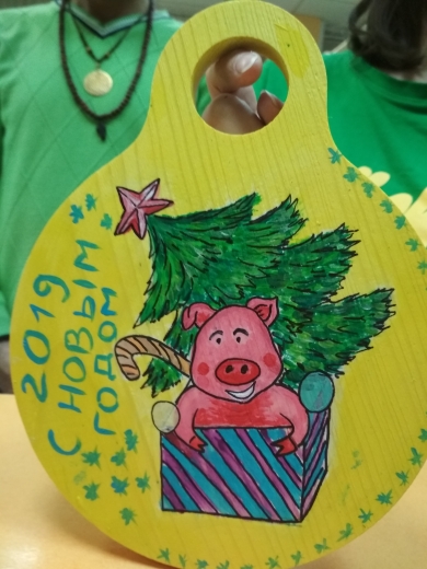 Юные читатели рисовали на бумаге, а их родители – на деревянных заготовках, во время мастер-класса, посвященном символу наступающего года – свинье. Поделки станут отличным праздничным подарком.