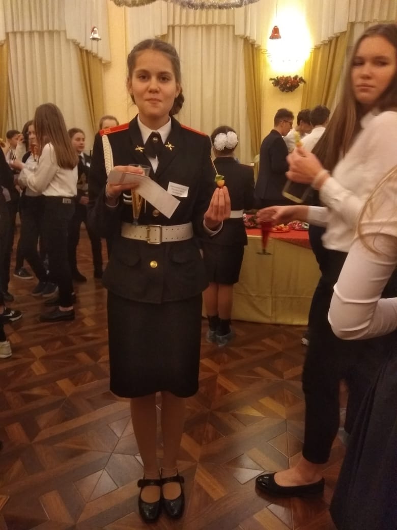 – Во время Дипломатического приема у каждого участника, была своя задача. Например, я выполняла обязанности общественного деятеля. Мне нужно было найти человека, игравшего роль директора МИДа, и предложить ему встречу в субботу в 12 часов. Было не просто, но я справилась со своей задачей, – рассказала воспитанница 7-го кадетского класса Евгения Пешехонова.