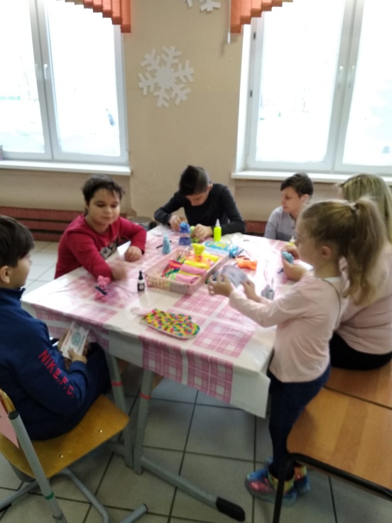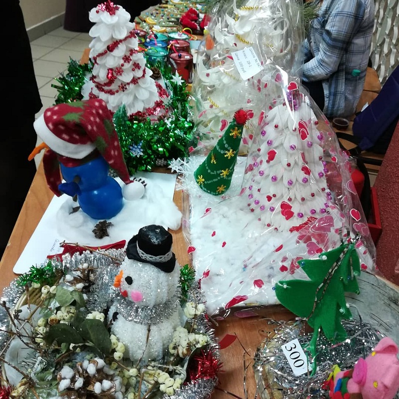 На прилавках были выставлены рисунки, украшения, новогодние сувениры и другие поделки, сделанные руками детей, педагогов и родителей всего образовательного комплекса. В этот день холлы школы были похожи на «Город мастеров». Для посетителей также была организована фотозона.