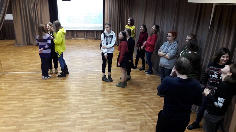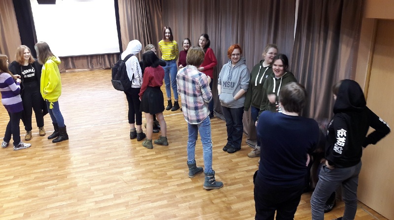 В игре приняли участие ученики 8-х классов колледжа декоративно-прикладного искусства имени Карла Фаберже. Ребята ответили на вопросы Натальи Владимировны, а потом посмотрели фильм о дендропарке и птицах, которые там зимуют. После этого игроки разделились на группы, каждой из которых нужно было показать жестами птицу.