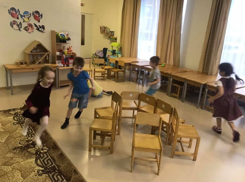 Кроме этого, дошколята поиграли в «ручеек» и приняли участие в веселом конкурсе на скорость. Под веселую музыку им нужно было ходить хороводом вокруг стульчиков, а как только мелодия останавливалась – быстро сесть на свой стул.