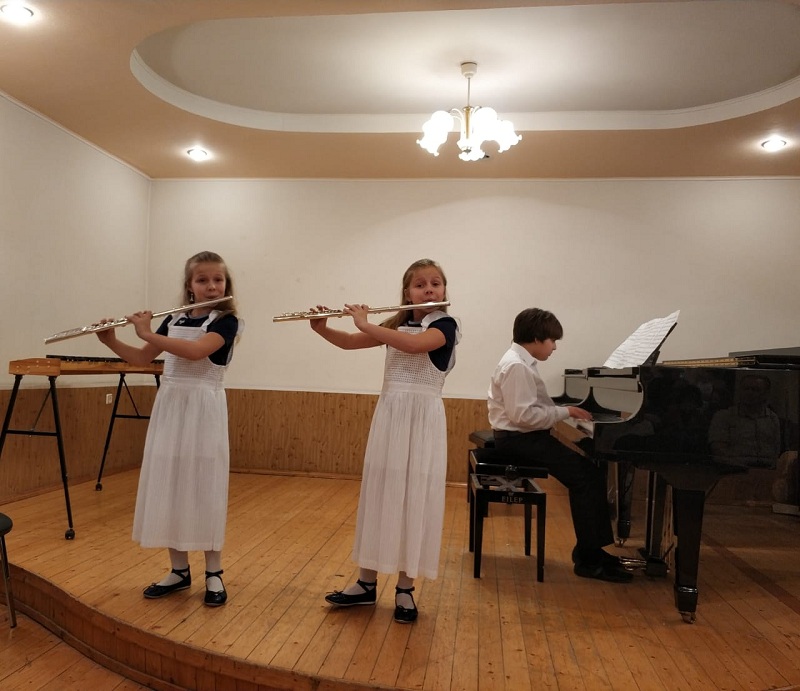 Зрители также тепло встретили дуэт Елизаветы Усковой и ее папы Александра Богачева, который в свое время учился в Детской музыкальной школе № 74. А семья Эдельберг (Меланья, Глеб, Климент, Владимир, Иоанна и Мария) поразила всех игрой на скрипке, флейте и фортепиано. А семейное трио в лице Ксении и Елизаветы Тихоновых и их бабушки Любови Васильевны исполнило на сцене польку Сергея Коняева.