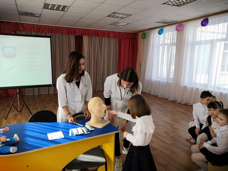 Ученики медицинского класса провели интерактивные игры, посвященные правильному питанию, гигиене полости рта и работе врача-офтальмолога. Все занятия были проведены с использованием современного медицинского лабораторно-исследовательского комплекса.