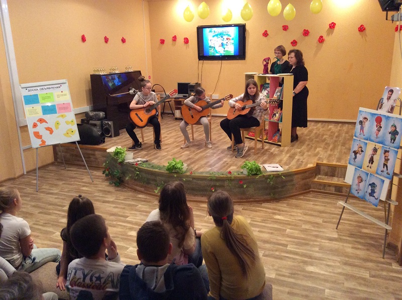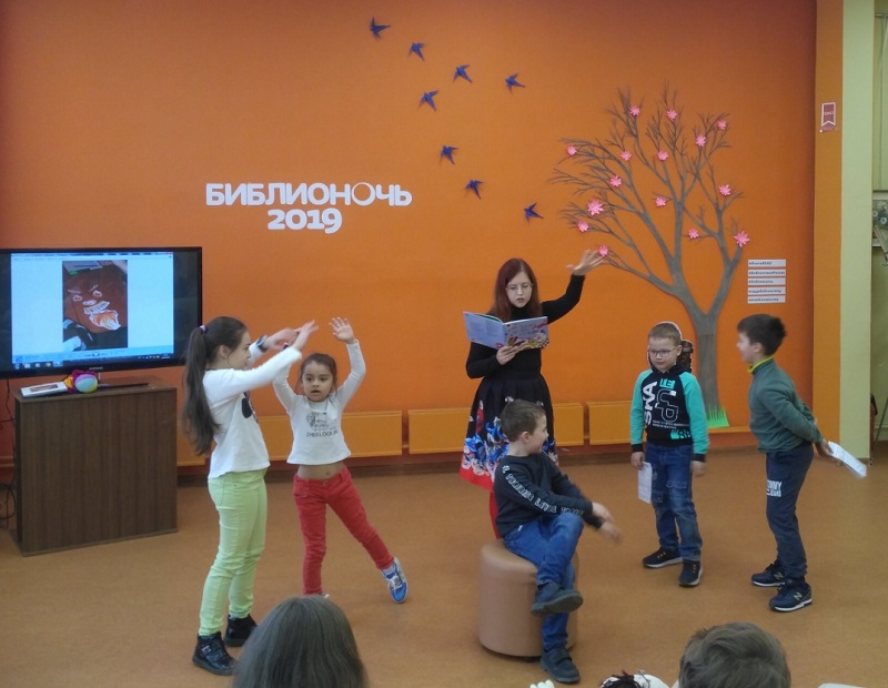 Гости вечера посмотрели интерактивный кукольный спектакль «Приключения Джингликов в библиотеке», побывали на церемонии награждения победителей музыкального конкурса «Живой звук» и приняли участие в программе, подготовленной театром-студией «Мастерская души», «А сегодня поиграем…», где Баба Яга познакомила всех со своим видео-блогом. Мероприятия «Библионочи» здесь разворачивались на четырех площадках. Юные читатели сыграли в увлекательный квест, созданный по мотивам книг Олега Роя, а в издательстве «Джингл-Таймс» они почувствовали себя настоящими журналистами. Кроме того, ребята побывали в «Школы Джингл-детективов» и «Творческой мастерской Динька».