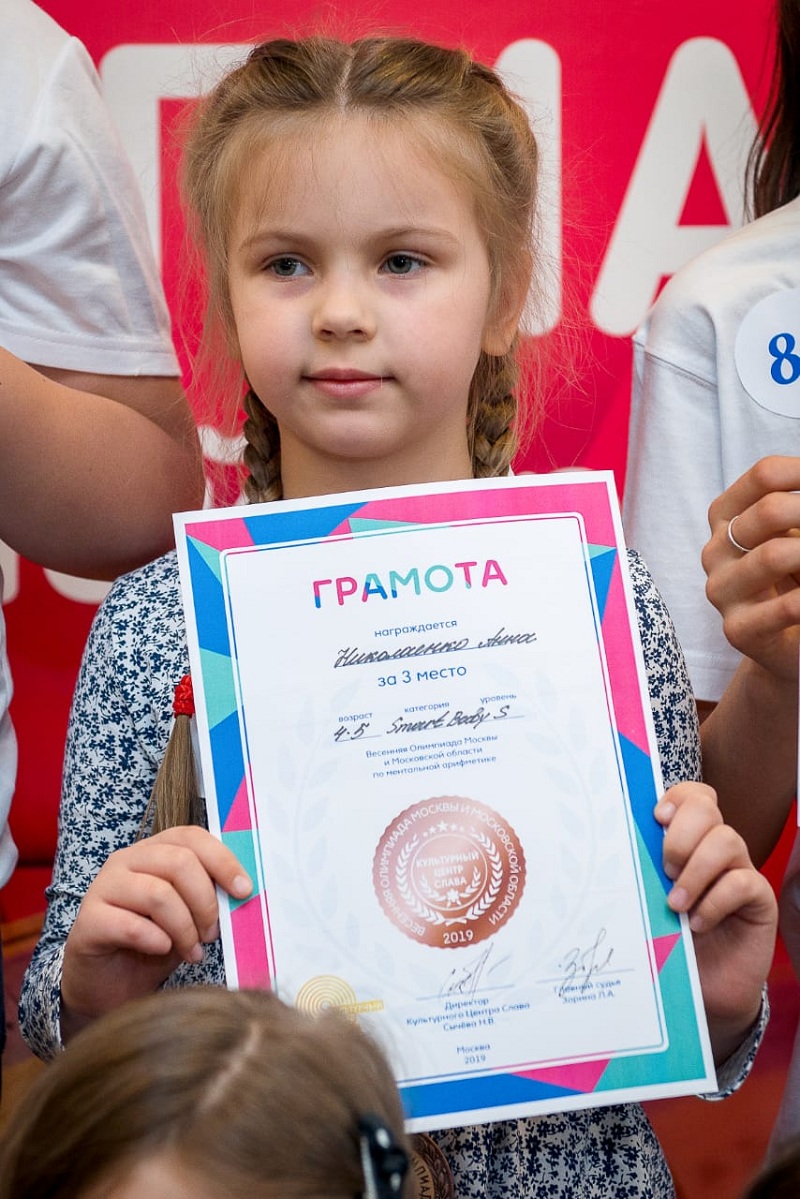 Весеннюю олимпиаду Москвы и Московской области по ментальной арифметике провел Культурный центр «Слава» в воскресенье, 21 апреля. Его участниками стали свыше 100 детей из 18 столичных и региональных Детских развивающих центров. Об этом редактору газеты «Бирюлево Восточное» рассказала генеральный директор Наталья Сычева.