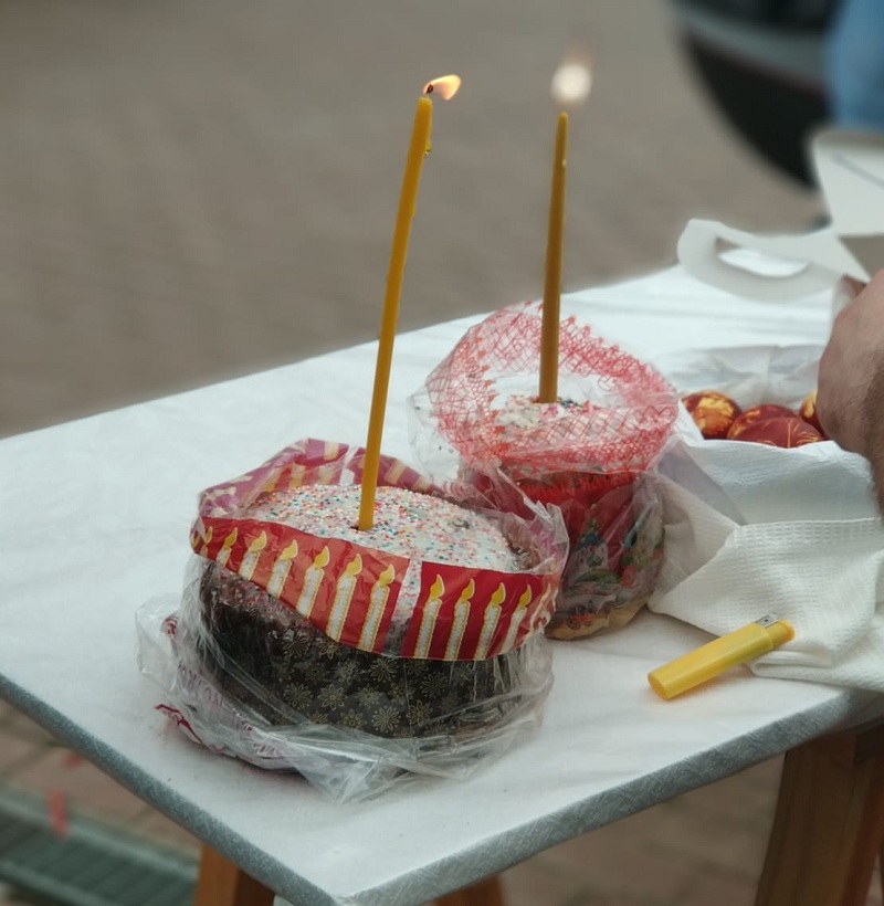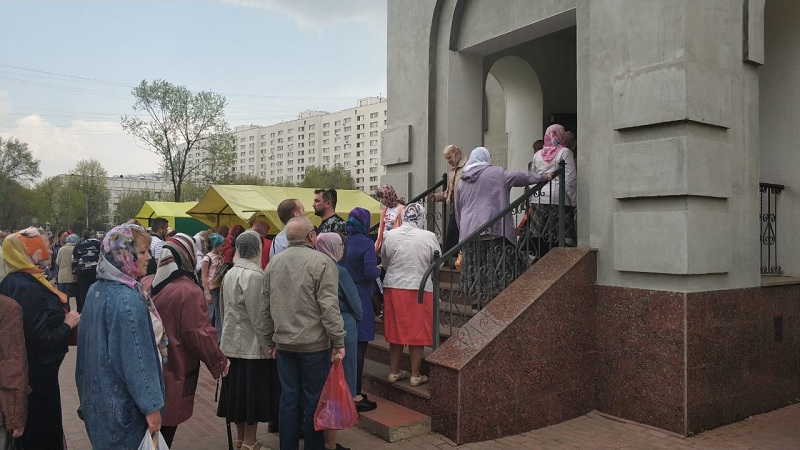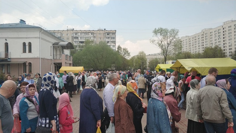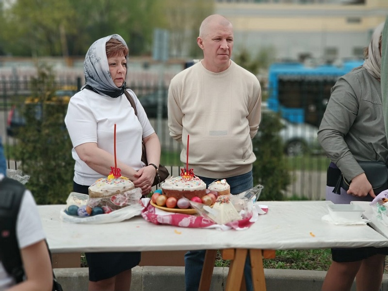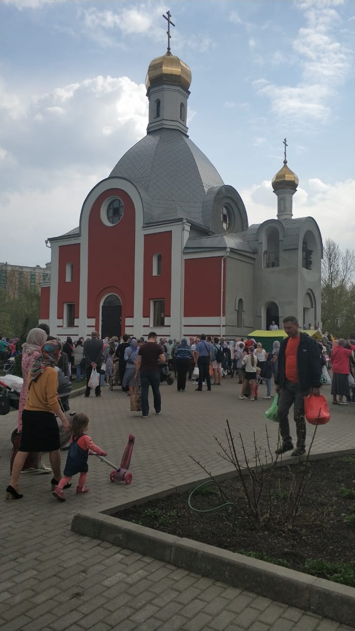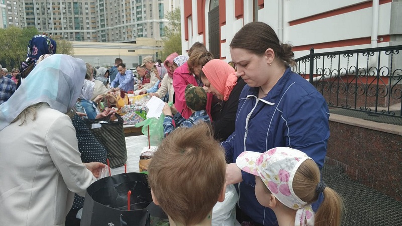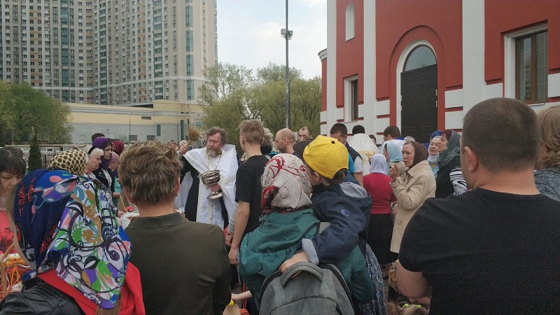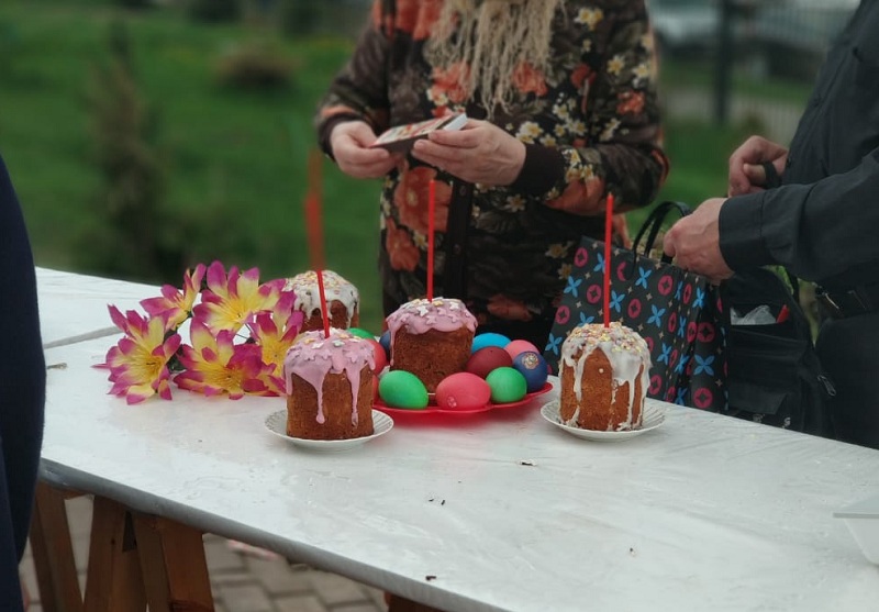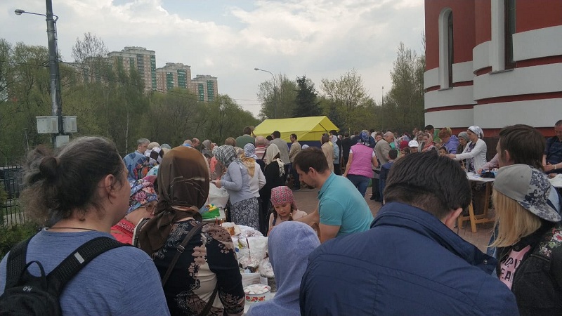 Около храма можно было купить церковную утварь, освященные куличи и различные пасхальные поделки. Столы для проведения обряда освящения принесенных прихожанами куличей, крашеных яиц и творожной пасхи были установлены полукругом вдоль храма. Помимо этого прихожане побывали на праздничных пасхальных службах.