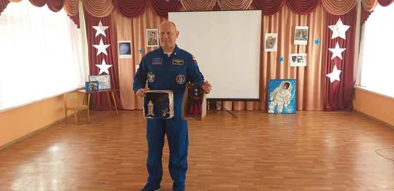 Герой России, космонавт-испытатель Олег Артемьев провел встречу с воспитанниками дошкольных групп № 5 школы № 1861 «Загорье» в понедельник, 27 мая.