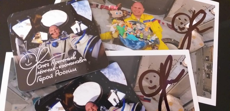 Детям так понравилось общаться с космическим гостем, что они долго не хотели отпускать его. По окончании мероприятия ребята сфотографировались с Олегом Артемьев, а также получили его автограф.