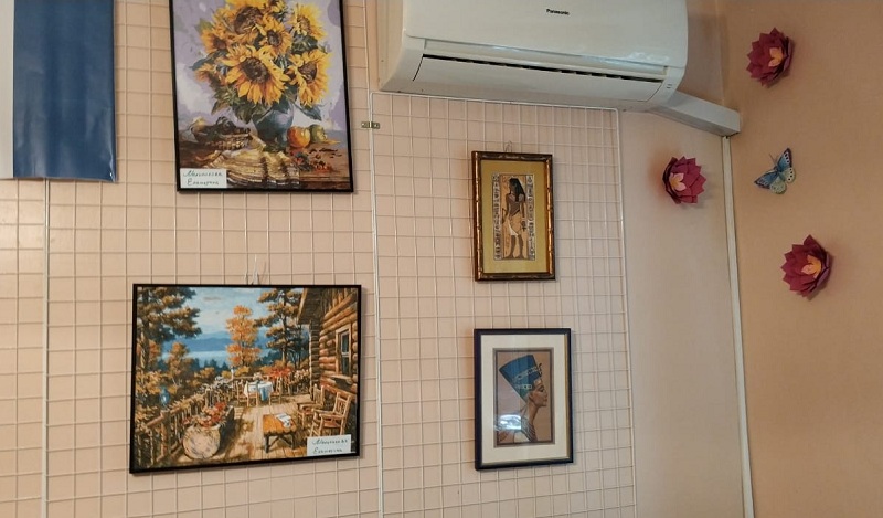 Небольшая экспозиция организована в помещении организации по адресу: улица Бирюлевская, дом 19. Мамы-рукодельницы, а также их дети вышили и нарисовали картины, смастерили тряпичных куколок, цветочные картины и деревья из бисера, а также подготовили другие красивые работы.
