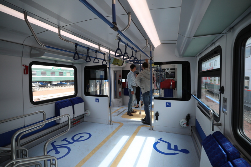 Семивагонный поезд сможет одновременно перевозить свыше двух тысяч человек. В вагонах разместят крепления для велосипедов, места для хранения багажа и оборудуют места для граждан с ограниченными возможностями здоровья.
