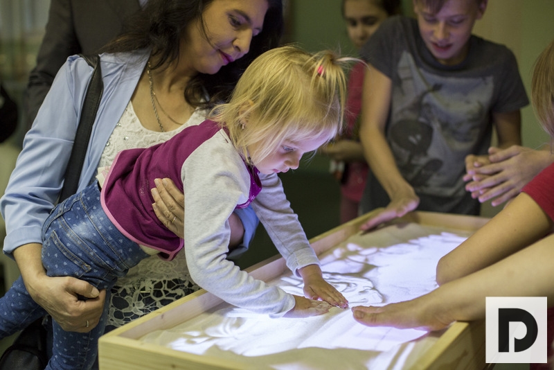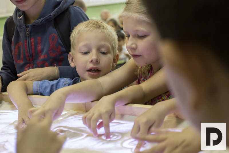 Сначала ребята посмотрели «песочную» анимацию, основанную по мотивам сказок Александра Сергеевича, сопровождаемую классической музыкой. А после этого ребята сами попробовали нарисовать пушкинских героев с помощью песка.
