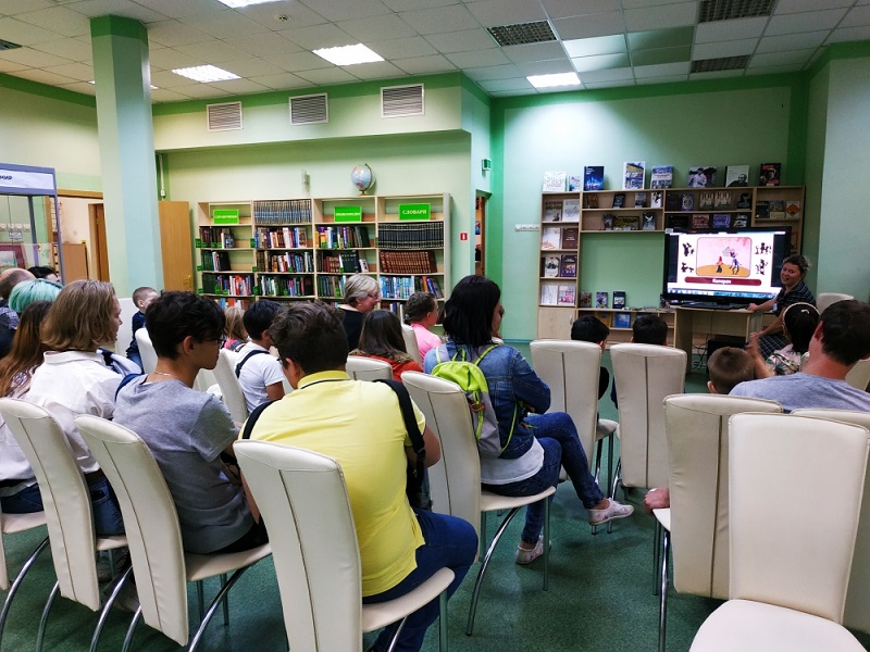 Всероссийская акция «Ночь кино – 2019» прошла в библиотеке № 137. Почетным гостем бирюлевской читальни стала член Международной федерации художников ЮНЕСКО, Московского Союза художников Елена Зарубова.