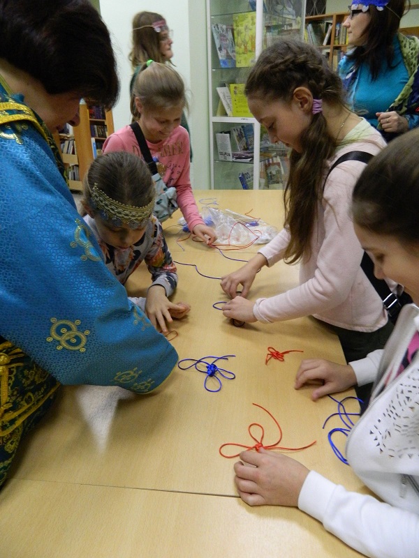 Детям особенно понравился мастер-класс «Удмуртская красавица», где они познакомились с одним из традиционных головных уборов народов Поволжья (Чувашии и Удмуртии) – налобной повязкой. А на занятии «Узел счастья» ребята узнали о самом древнем узле, которому приписывались волшебные силы, – «дошканы шарыыры». Именно его можно встретить во всех древних орнаментах резьбы по камню, дереву и прочим материалам в Туве.
