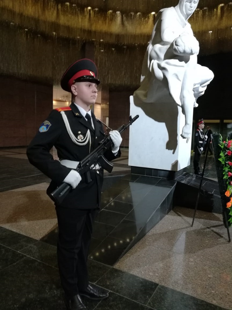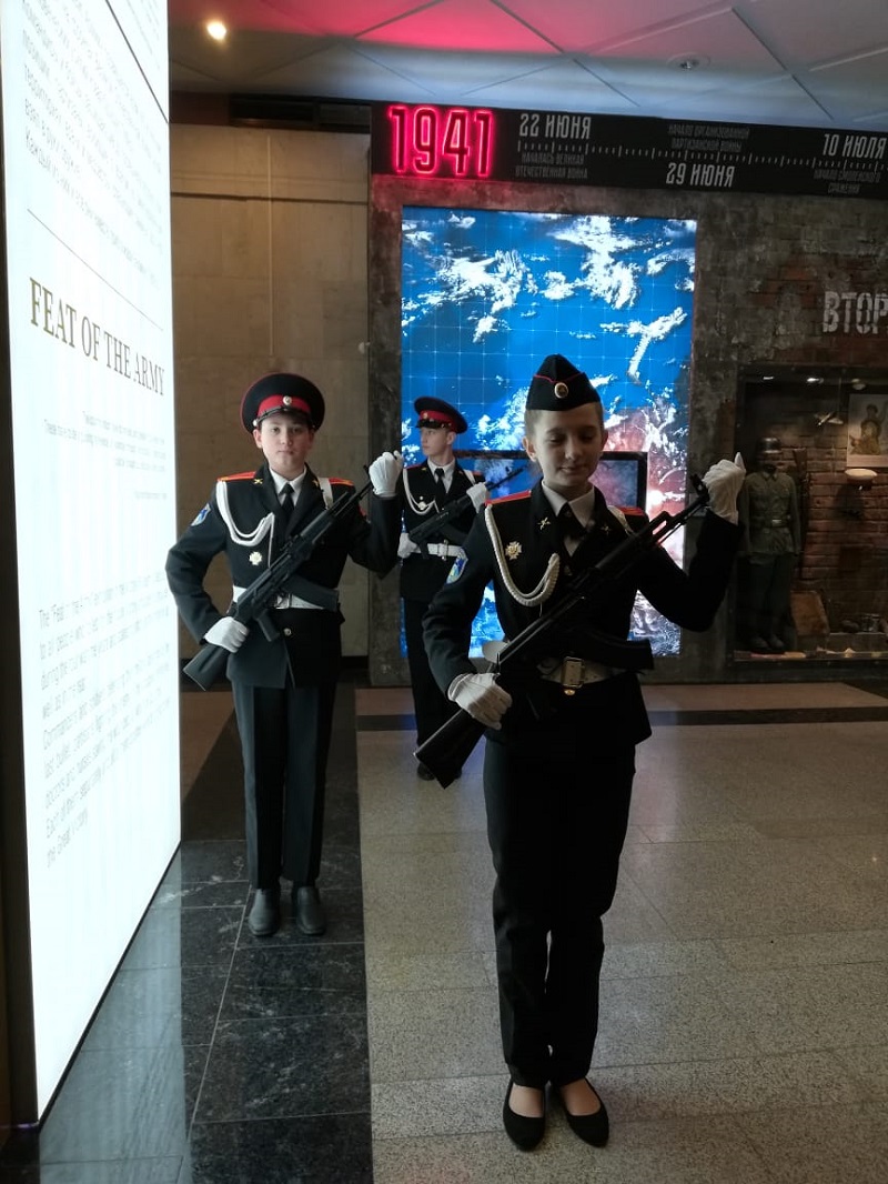 – Утро у ребят началось с автобусной экскурсии-урока «Город-герой Москва. Поклонная гора. Музей Победы». Ученики кадетского класса Государственной дипломатической службы с чувством долга и ответственности отнеслись к поставленной задаче. Каждый из них отметил, как волнительно и почетно предоставленное им право несения вахты на Посту № 1 в Зале Памяти и Скорби Музея Великой Отечественной войны на Поклонной горе, – пояснила Ольга Полянских.