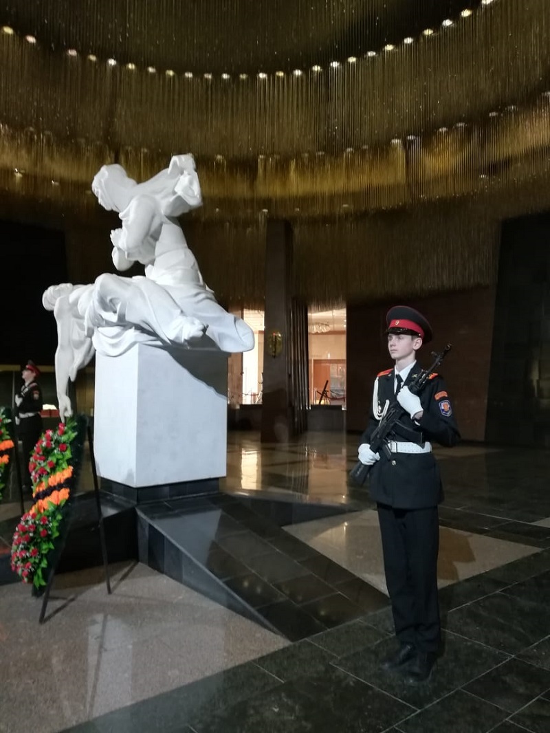 В результате, в течение четырех часов 25 воспитанников посменно несли караул возле скульптурной группы️ «Скорбь». В свободное от несения вахты время они посетили кинолекторий, где посмотрели интерактивную экспозицию «Победители 1941-1945 гг.», а также приняли участие в образовательном квесте по экспозициям Музея Победы.