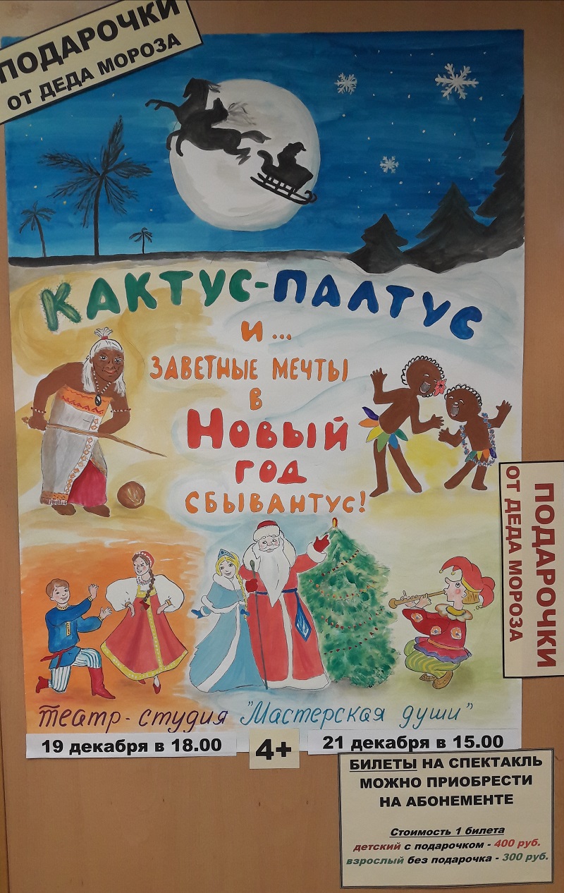 В библиотеке № 140 также состоится новогодний интерактивный спектакль «Кактус-палтус и … заветные мечты в Новый год сбывантус». Его можно будет увидеть 19 и 21 декабря.