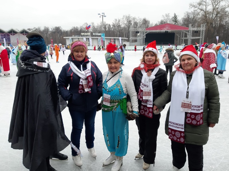 Главные события праздника развернулись на катке «Лед». Здесь выступили ученики школы фигурного катания Анастасии Гребекиной, а также прошел настоящий новогодний карнавал. Участники «Московского долголетия» со всех уголков Москвы представили образы сказочных героев – Дедушки Мороза, Кащея Бессмертного, Лисы Алисы, Лягушки-Царевны и многих других.