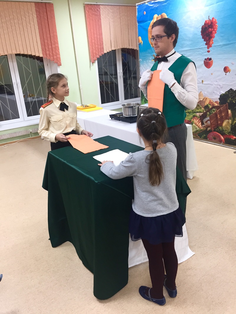 В заключении мероприятия взрослых и детей посвятили в некоторые секреты красивой сервировки стола. Шеф-повар школьного ресторана Сергей рассказал, что, помимо соблюдения стандартов ресторанного этикета в посуде и приборах, необходимо использовать тканевые салфетки. Ведь именно эти столовые аксессуары создают особенную атмосферу во время принятия пищи.