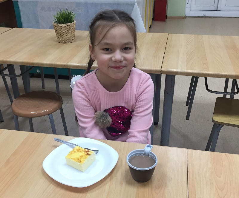 А когда омлет и какао были готовы, наступил долгожданный момент дегустации. На столах гостей ждали ароматные кусочки только что приготовленного пышного блюда, горячий напиток и не только. На десерт Комбинат угостил всех выпечкой, сладостями и фруктами. Конечно, не обошлось без подарков.