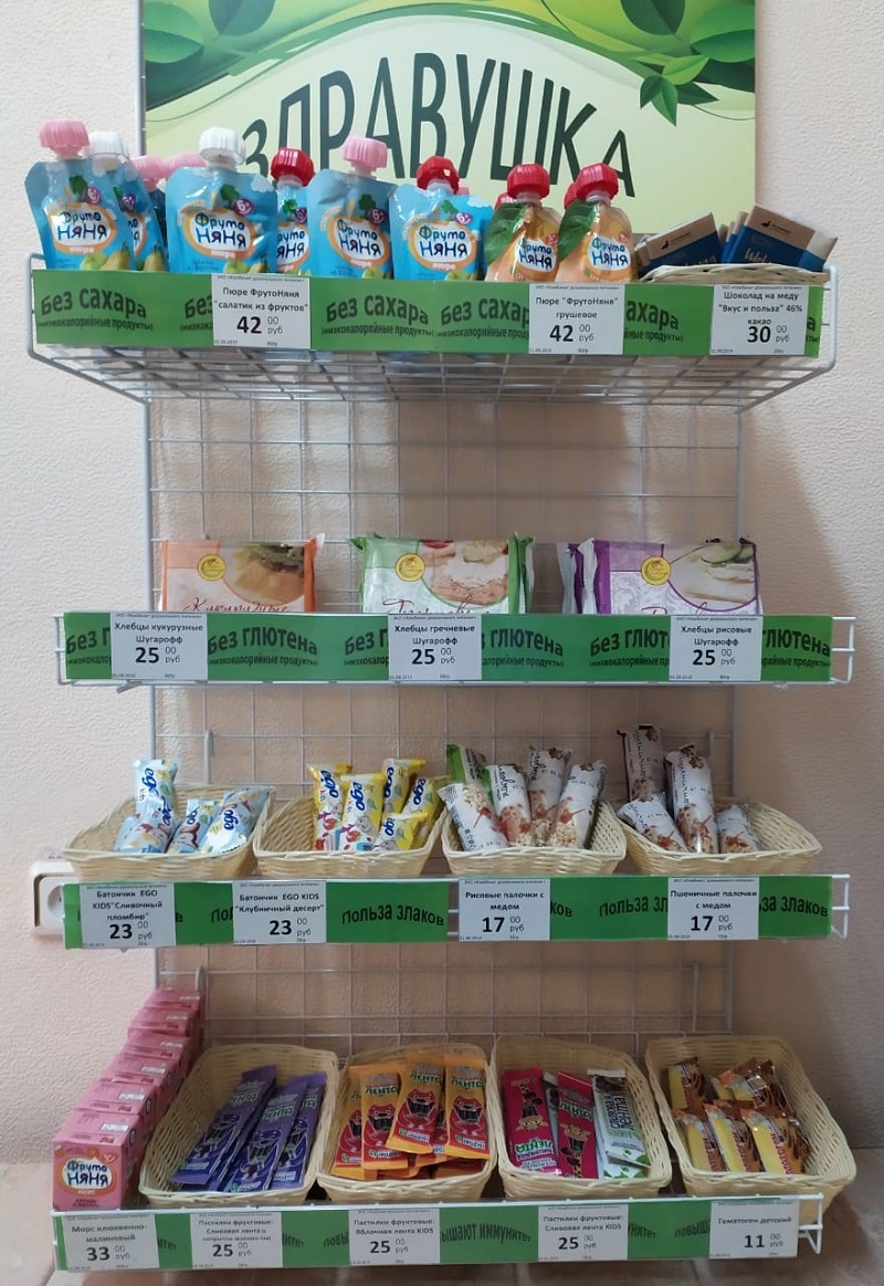 С начала 2017-2018 учебного года во многих школах Москвы и части образовательных учреждений Московской области появились стойки «Здравушка» с особыми продуктами, которые особенно актуальны для тех, кто имеет определенные медицинские рекомендации по питанию. Ассортимент в школьном буфете был пополнен новыми особыми продуктами – без сахара и глютена, низкокалорийными и направленными на повышение иммунитета. По своему составу они отвечают всем требованиям санитарных норм и правил питания школьников.