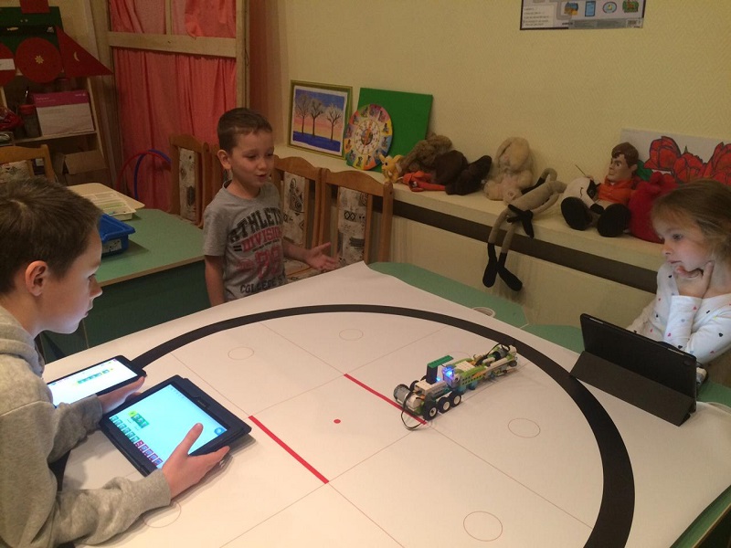 Ребята мастерят своих роботов, а специальная программа позволяет «оживить» изделия на планшете. Проходят встречи под руководством педагога, имеющего специальный сертификат «Методика использования робототехники платформы Лего», Виктории Прончатовой.