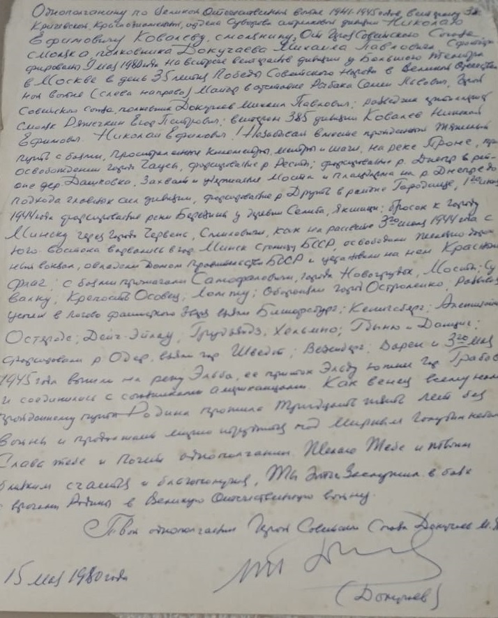 – В то время Михаил Докучаев написал приказ о награждении Орденом Славы меня и моих товарищей. Куда эти документы делись неизвестно по сегодняшний день. Возможно, они были уничтожены, возможно и нет, – посетовал ветеран.