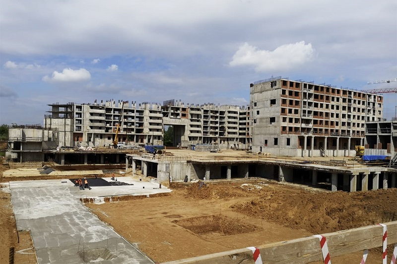 «В корпусе № 27 закончены монолитные работы по стенам и перекрытию парковки А-2, а также по подземной части жилого дома. В строениях № 28 и № 29 подошло к концу возведение фундаментной плиты и шпунтового ограждения. Специалисты приступили к обустройству монолитных стен подземной части здания, параллельно возводятся каменные стены и перегородки этажей. Что касается корпусов № 30 и № 31, там активно ведется бетонирование стен и перекрытий 7-11 этажей. Организовано также оштукатуривание поверхностей и монтаж лестничных маршей. Завершена гидроизоляция и утеплены стены цоколя», — рассказала Анастасия Пятова.