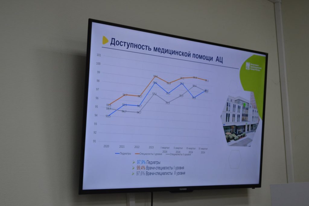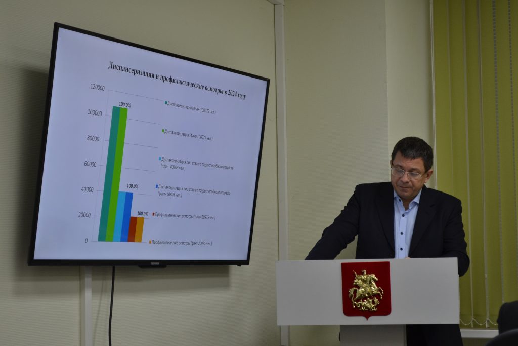 Первым спикером стал главный врач Городской поликлиники №53 Дмитрий Балашев. Он рассказал присутствующим о показателях работы медицинского учреждения в прошедшем году. Также были озвучены планы на 2025 год, а особое внимание было уделено введению в эксплуатацию главного корпуса ГП №52, который находится на этапе ремонта.