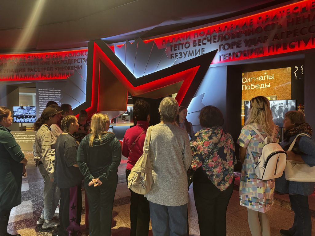 В рамках мероприятия участники ознакомились с масштабной экспозицией «Подвиг народа». В музейном пространстве гостям рассказали о вкладе в Великую Победу тружеников тыла – рядовых граждан Советского Союза, деятелей науки, культуры, медицины и всех тех, кто трудился в тяжелые годы самого крупного в истории человечества конфликта на благо страны.