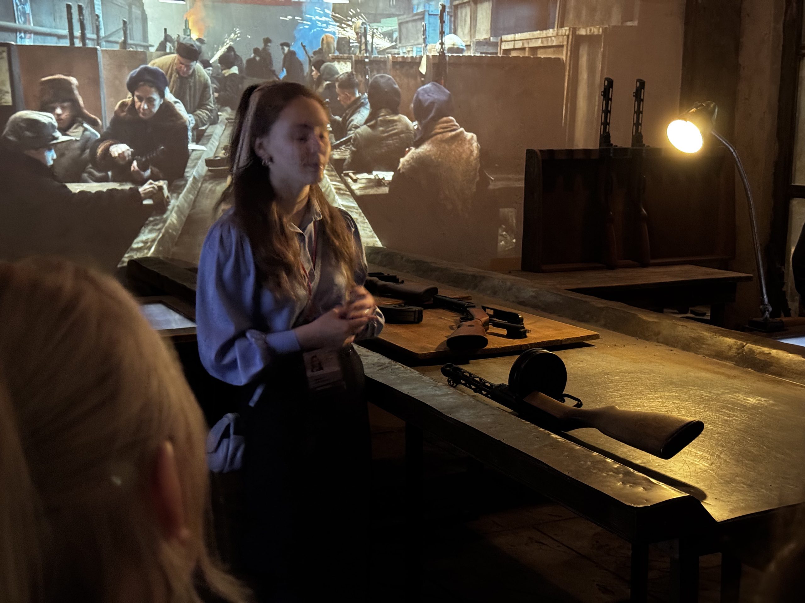 Участники экскурсии посетили множество тематических разделов. Гости смогли увидеть, как встретил войну гарнизон Брестской крепости, библиотеку блокадного Ленинграда, заводы, госпитали, кабинет Иосифа Сталина, послушать сводки Совинформбюро из студии, в которой работал диктор Юрий Левитан.