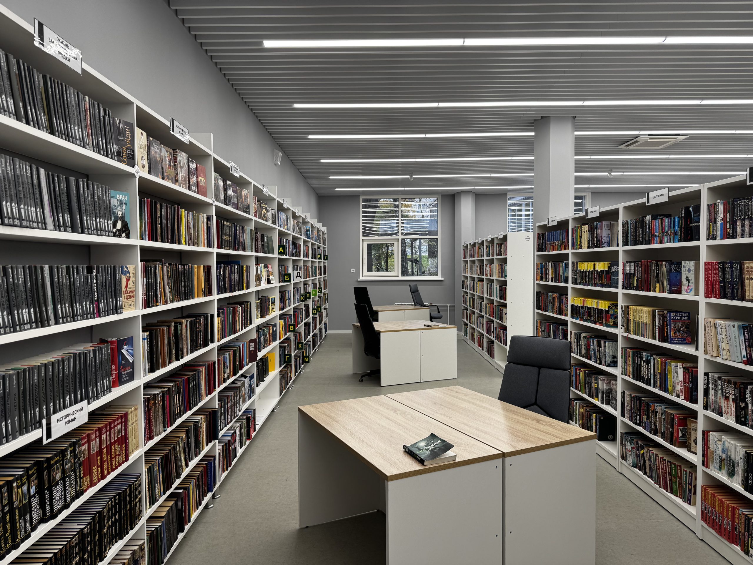 В здании также реконструировали помещения. В частности, здесь обустроили читальные залы с современными стеллажами и удобной мебелью, коворкинг для работы с ноутбуками, а в медиазоне подключили бесплатный интернет.