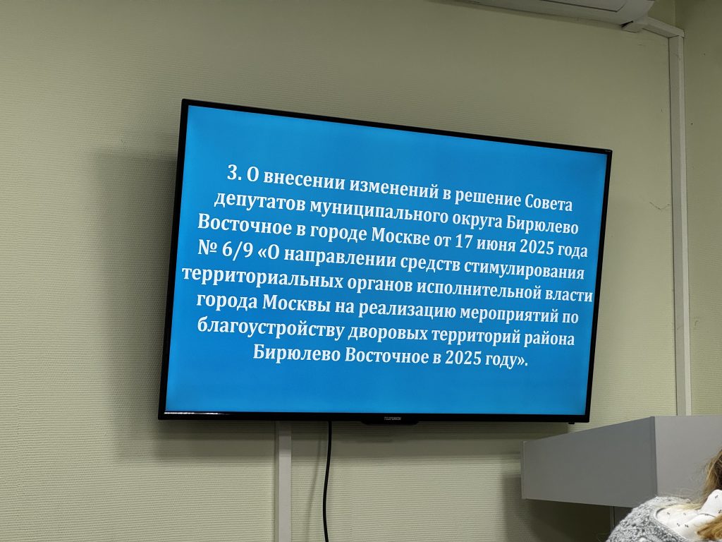 Кроме того, парламентарии рассмотрели вопросы о плане работы Совета депутатов МО БВ на I квартал 2026 года, графике приема граждан депутатами СД в следующем году.